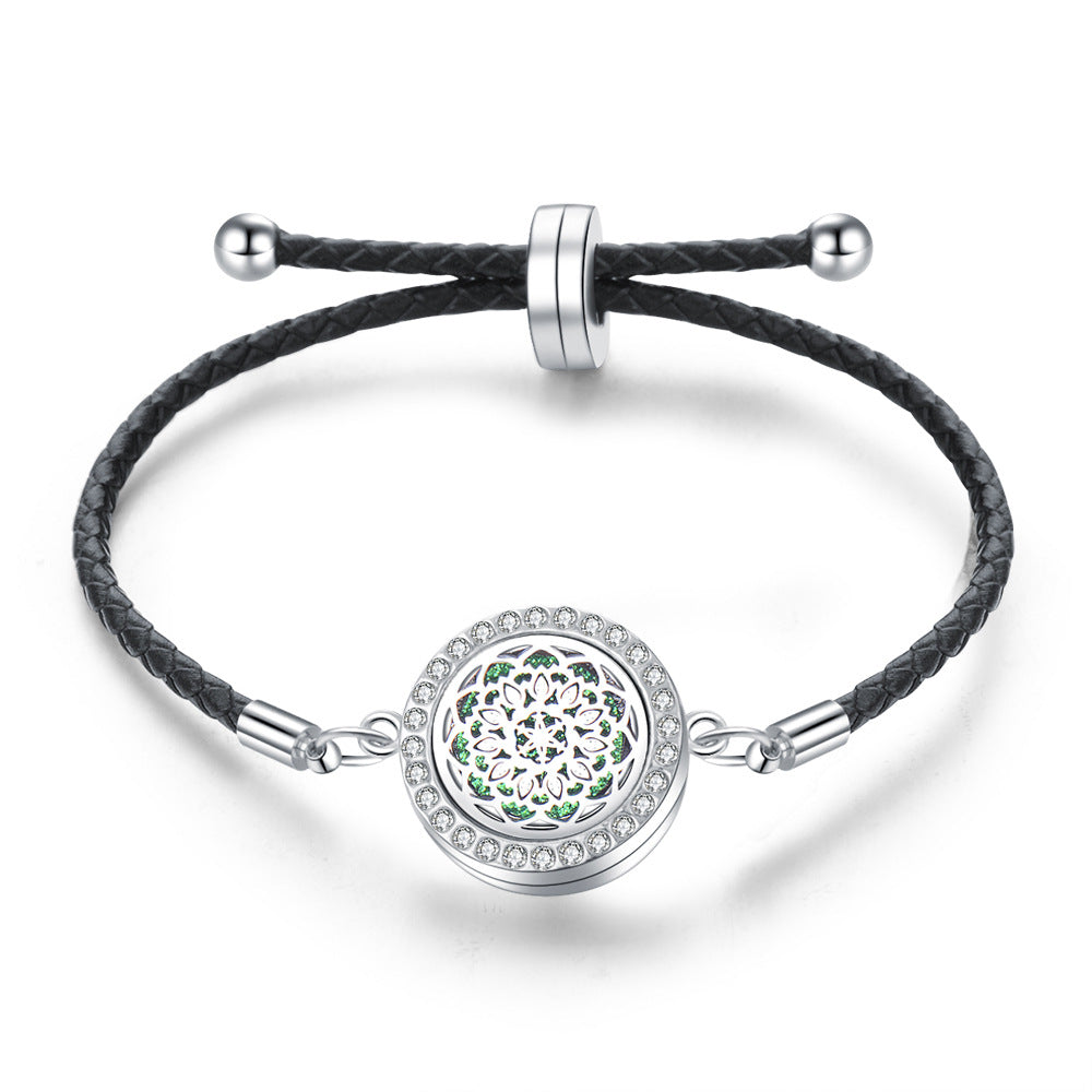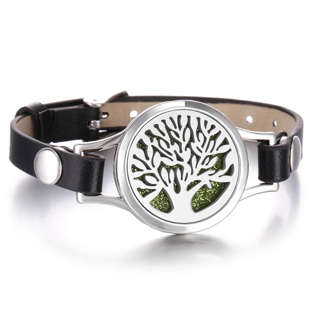 Experimenta la elegancia y la serenidad con nuestra pulsera aromática. Diseñada con una almohadilla en su interior intercambiable, esta pulsera te permite llevar tu fragancia favorita contigo de manera discreta y sofisticada.
